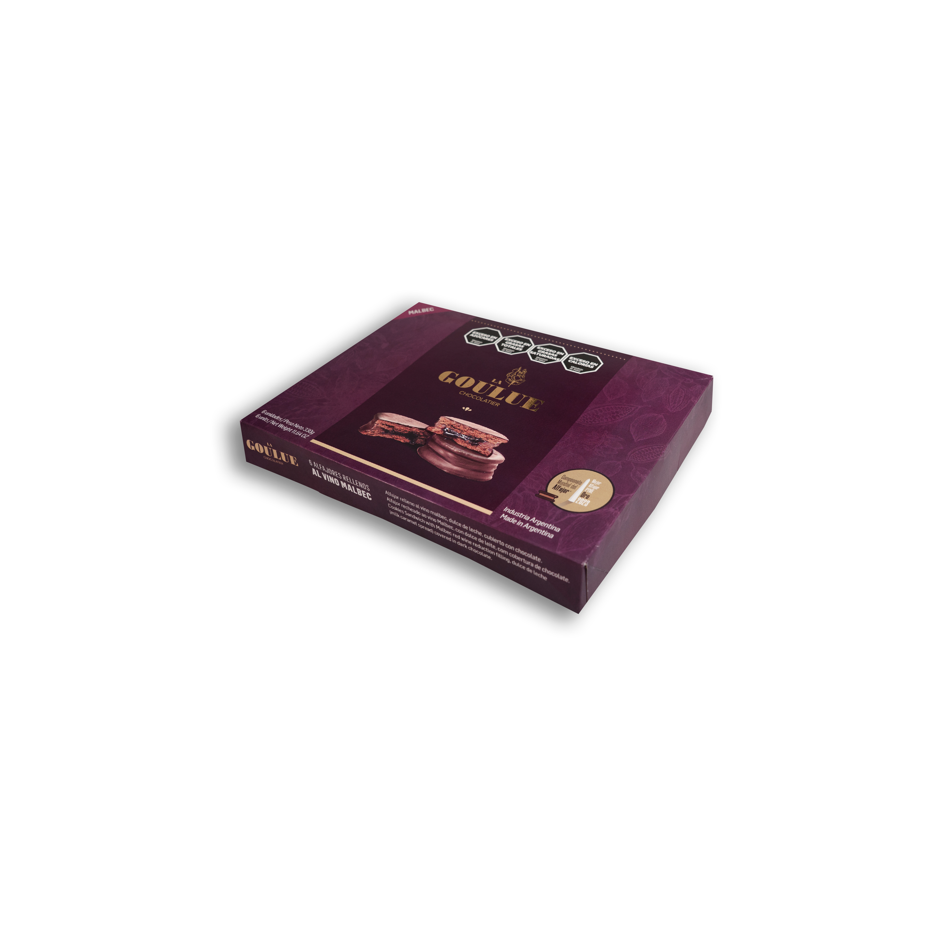 An elevated alfajor filled with real Malbec wine and coated in fine chocolate.