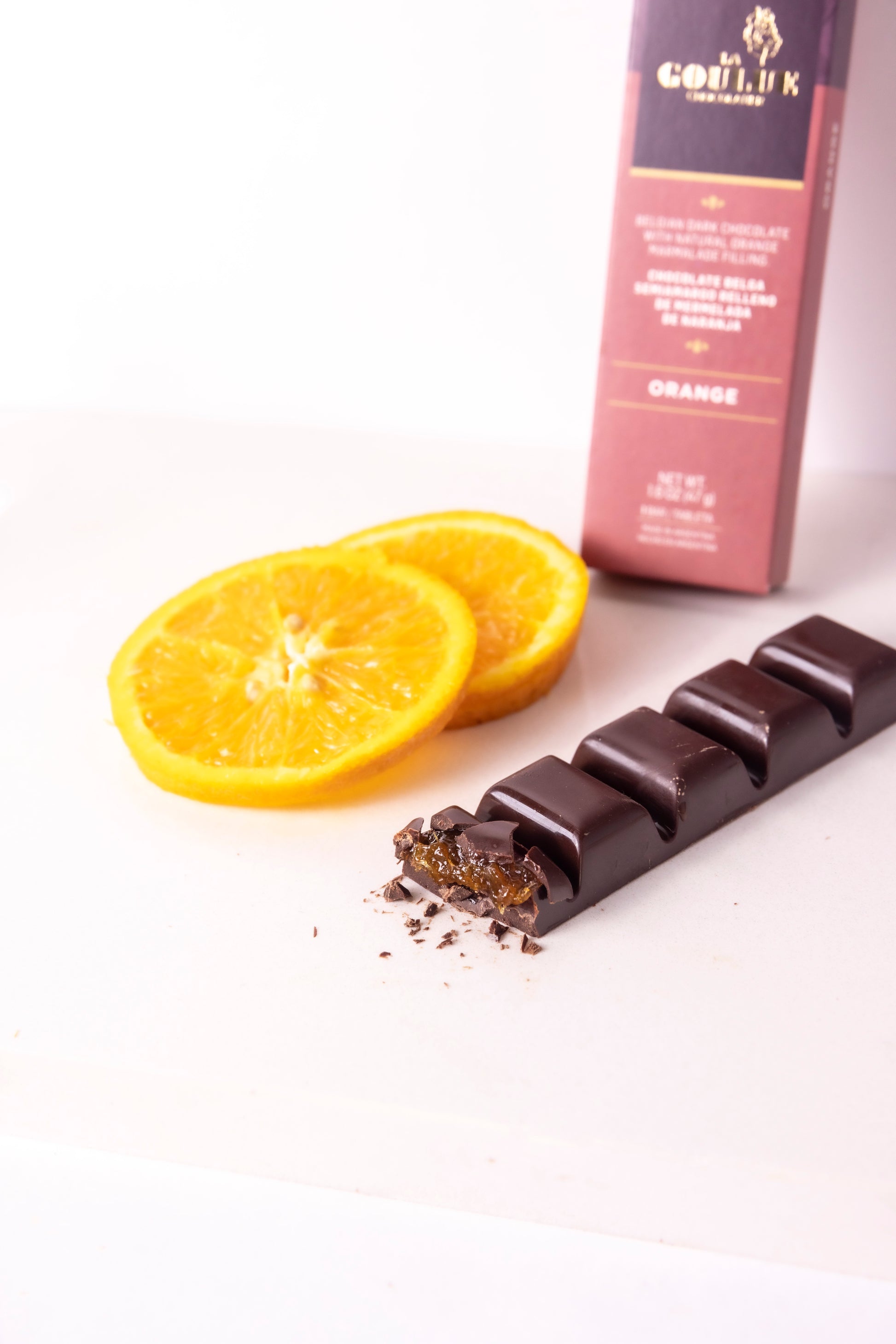 -Belgium Dark Chocolate (55% cocoa content) with Natural Orange Marmalade filling 1.6 OZ (47 g).